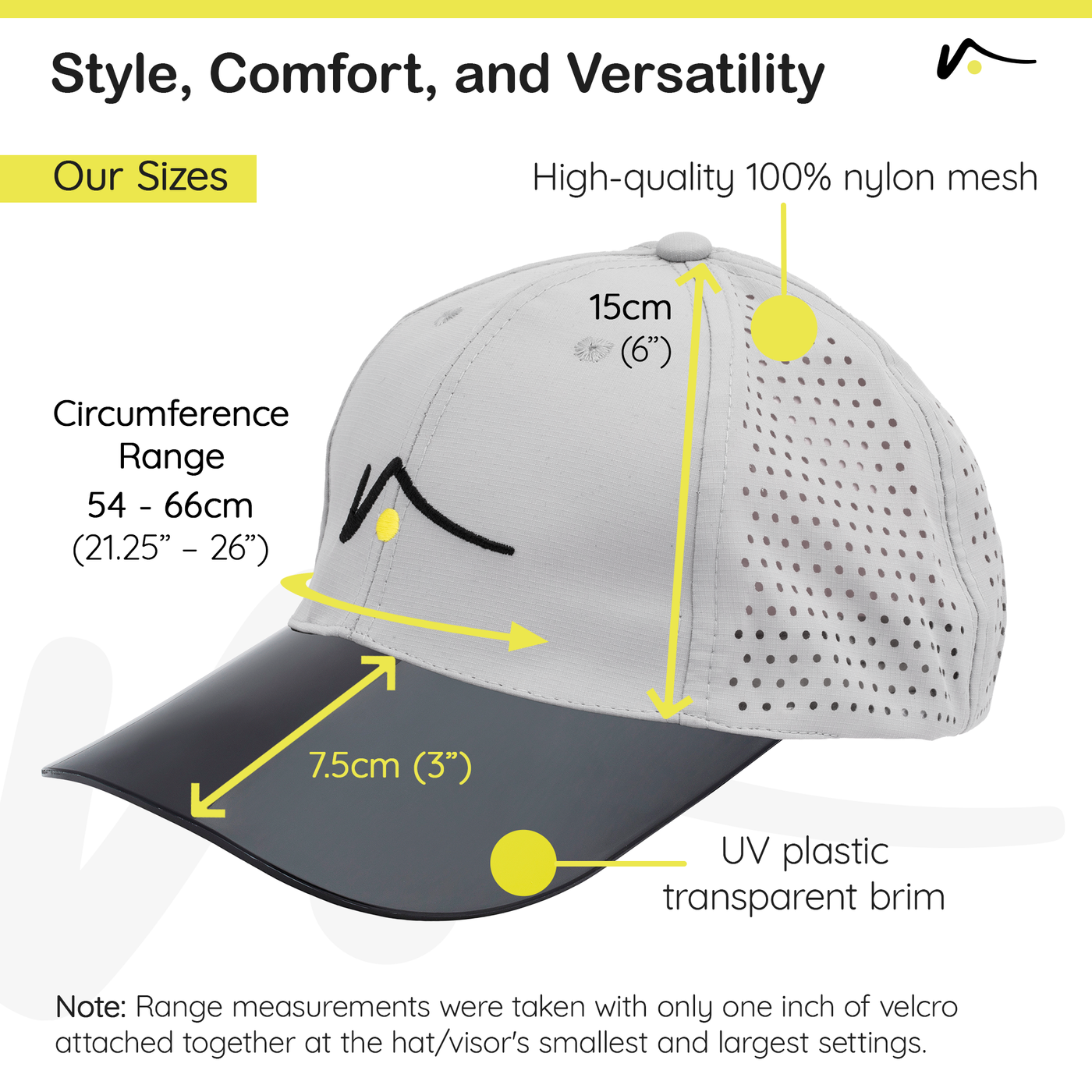 This innovative new visor, designed with both form and function in mind, is crafted from high-quality 100% chino cotton, renowned for its durability and comfort. The Velcro closure at the back ensures a snug, adjustable fit suitable for men and women alike.  What sets this hat apart from traditional hats is its UV plastic transparent brim, a revolutionary, patent pending element not only offering full sun protection but also permits unimpeded 360-degree views.