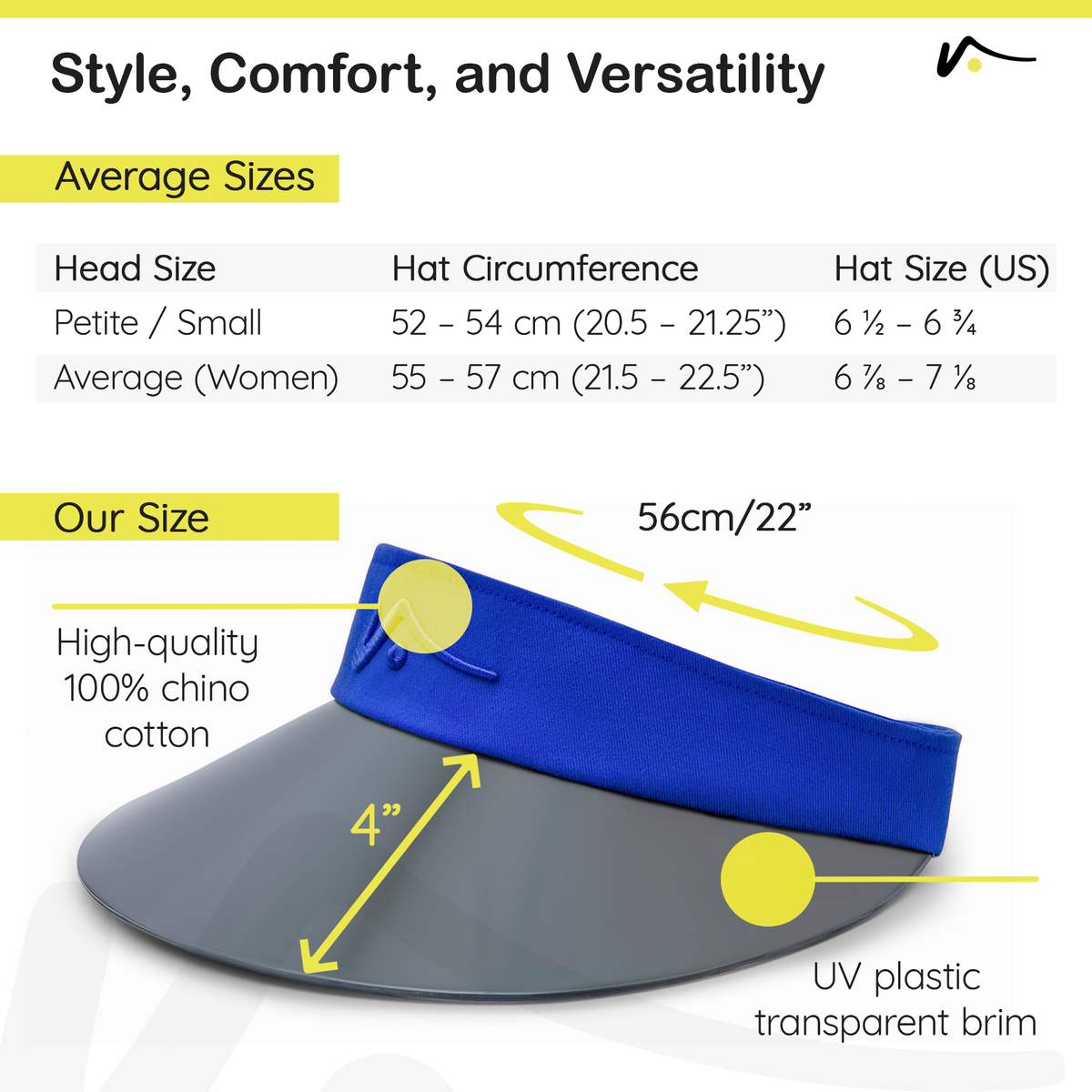 This innovative new visor, designed with both form and function in mind, is crafted from high-quality 100% chino cotton, renowned for its durability and comfort. The Velcro closure at the back ensures a snug, adjustable fit suitable for men and women alike.  What sets this hat apart from traditional hats is its UV plastic transparent brim, a revolutionary, patent pending element not only offering full sun protection but also permits unimpeded 360-degree views.