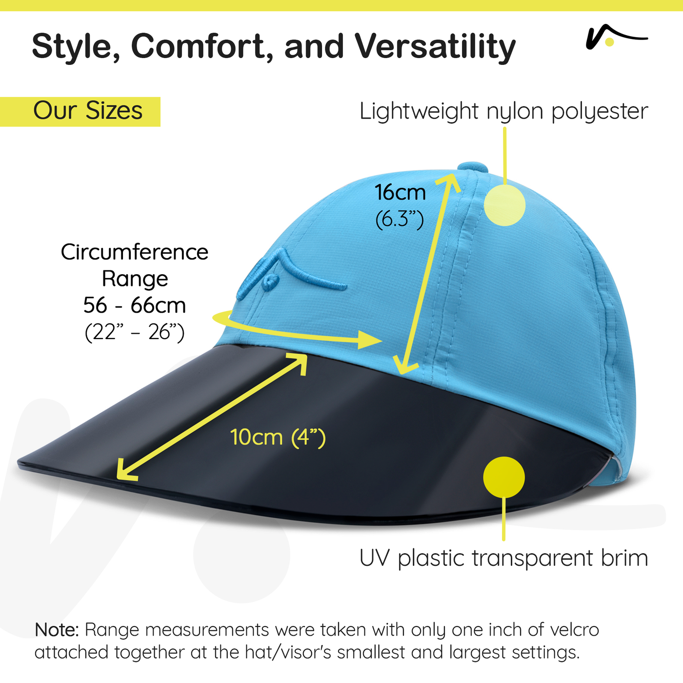 For those who enjoy outdoor sports, our hats and visors stand out as the superior choice over traditional hats and visors with cotton brims.  The key lies within the transparent UV brim, a game-changing feature that traditional headwear lacks.  Instead of limiting view, our hats offer unparalleled 360-degree views, enhancing depth perception and situational awareness in a way that conventional brimmed hats and sunglasses simply can’t.