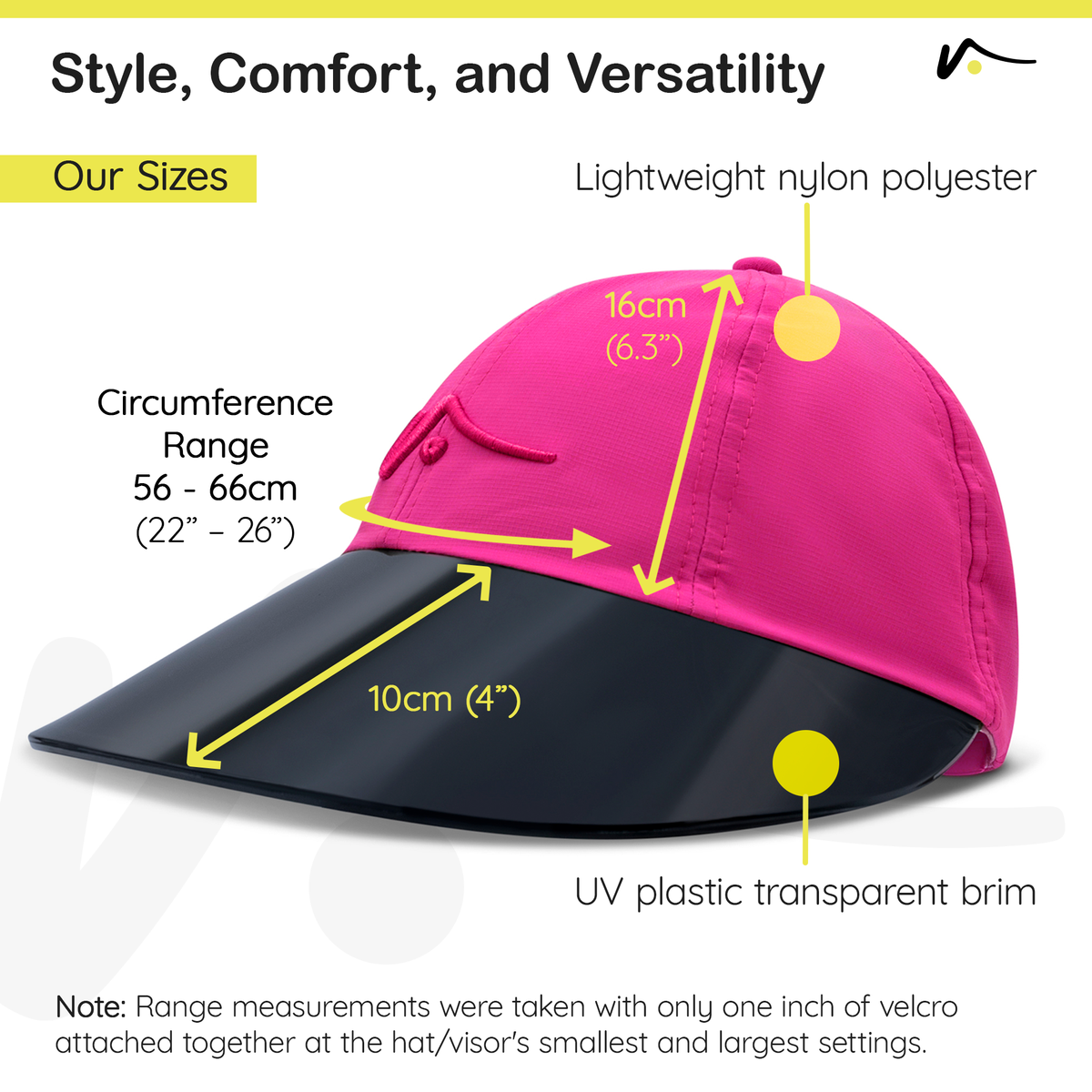 This innovative new visor, designed with both form and function in mind, is crafted from high-quality 100% chino cotton, renowned for its durability and comfort. The Velcro closure at the back ensures a snug, adjustable fit suitable for men and women alike.  What sets this hat apart from traditional hats is its UV plastic transparent brim, a revolutionary, patent pending element not only offering full sun protection but also permits unimpeded 360-degree views.